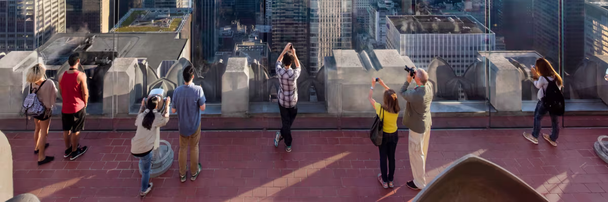 Before your visit to Top of the Rock, please note that while food and drinks aren't allowed inside the observatory, Rockefeller Center offers a wide range of dining options nearby, including Lodi, Del Frisco’s Grille, Bill’s Bar & Burger, Dough, Chip City, and FuKu. Don’t forget to leave time for shopping at iconic retailers like FAO Schwarz, the LEGO Store, Nintendo, Kate Spade, NBC Store, and more. When arriving for your pre-booked time slot, enter through the glass revolving doors on West 50th Street (between 5th and 6th Avenues), bypass the kiosks, and head straight upstairs where your pass will be scanned. For the best experience and minimal wait times, plan your visit between 9AM and 3PM. Top of the Rock is fully wheelchair accessible, offers accessible restrooms, and welcomes licensed service dogs.